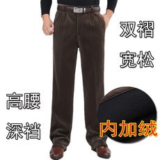 老爷车灯芯绒男裤中年男士休闲裤宽松直筒中老年加绒加厚条绒裤冬