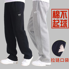 春秋冬季男士纯棉加肥加大码休闲裤中年长裤直筒宽松加绒弹力卫裤