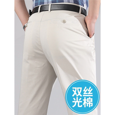 高档丝光棉休闲裤男士春季厚款商务中年爸爸宽松高腰深档长裤子男