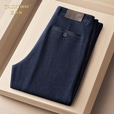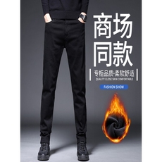 啄木鸟冬季加绒男裤直筒商务西裤中年弹力厚款男士休闲长裤子男款