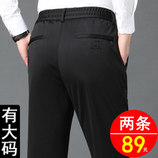宽松高腰松紧腰裤子男士大码运动休闲裤高弹力免烫西裤中年爸爸装