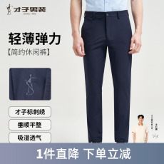 才子男装弹力休闲裤男2025夏季新款薄款修身裤子中年商务垂感长裤