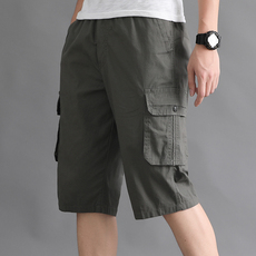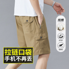 夏季五分中裤男士中年休闲运动多口袋工装短裤大码宽松直筒沙滩裤