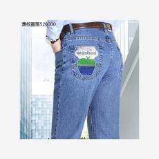 苹果牛仔裤男秋冬厚款中年男裤直筒宽松纯棉高腰苹果牌休闲长裤子