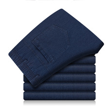 夏季男士牛仔裤弹力薄款工作服裤子男宽松大码中年松紧腰休闲裤男