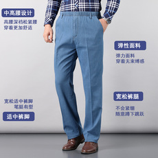 恒源祥冰丝薄款中年男士牛仔裤夏装商务休闲弹力直筒宽松长裤男