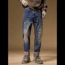 破洞牛仔裤男修身小脚九分潮牌春季新款浅色韩版潮流休闲男士
