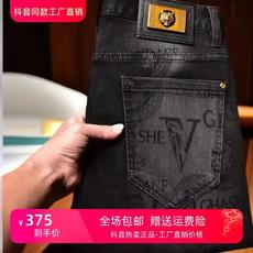 2025年新款牛仔裤男潮牌修身小脚弹力韩版百搭高端烫印休闲长裤子