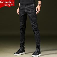 秋冬季加厚潮男装纯黑色韩版修身显瘦中腰休闲小脚牛仔长裤动力牛