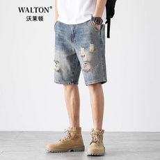 夏季白色牛仔短裤男弹力五分裤青少年韩版中裤修身潮大码休闲马裤