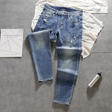 牛仔裤男潮牌修身直筒小脚裤子韩版秋季破洞乞丐春季休闲男士长裤