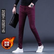 2023秋冬新款裤子男士牛仔裤韩版潮流修身小脚休闲长裤厚红色男裤