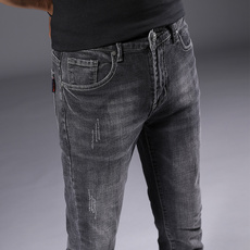 秋季破洞刺绣牛仔裤男潮牌修身百搭小脚休闲裤子韩版潮流灰色潮流