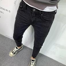 2023秋季新款英伦风修身黑色牛仔裤潮男小脚裤韩版时装裤子休闲裤
