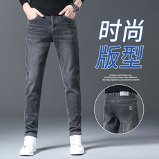 香港2025春秋款烟灰色牛仔裤男弹力休闲韩版潮流修身小脚春季裤子