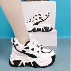 【隐形内增高8CM】厚底拼接超轻款白色真皮时尚休闲鞋女