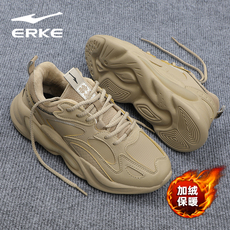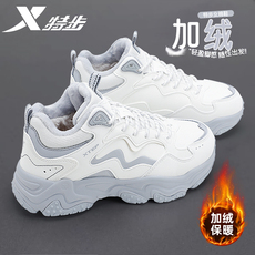 鸿星尔克加绒女鞋冬季新款皮面保暖老爹鞋女士厚底增高休闲运动鞋