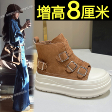 7cm内增高女鞋2025新款秋冬加绒保暖厚底高帮鞋百搭休闲运动板鞋