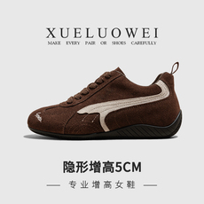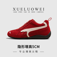 XUELUUOWEI专业内增高女鞋2025新款秋冬休闲真皮运动鞋红色德训鞋