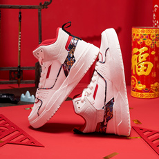 秋季潮流男鞋轻奢简约红底系带鞋软底防滑运动休闲透气刺绣板鞋男