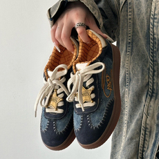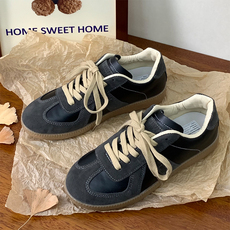 2025新款复古圆头拼色系带德训鞋男女款啊百搭休闲情侣鞋阿甘板鞋