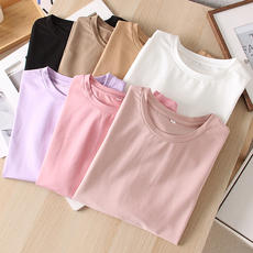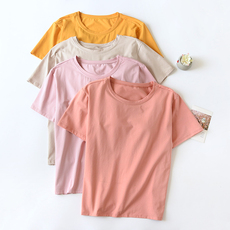 「13色」基础款纯棉显瘦圆领简约百搭正肩短袖打底上衣女T恤L284