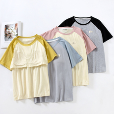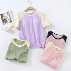 带胸垫一体式女士睡衣短袖T恤夏季宽松闲纯棉家居服圆领上衣外穿