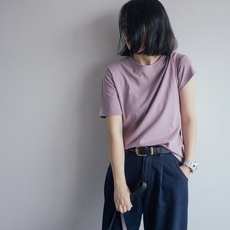 2025春季新纯棉短款t恤女短袖薄纯香芋香芋紫薄款百搭CHIC宽松潮