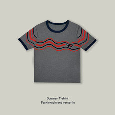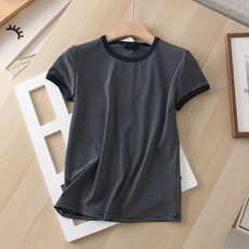亲肤纯棉撞色条纹圆领休闲学院风2025夏季新款短袖百搭女T恤L009