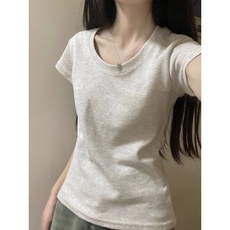 优质纯棉正肩短袖t恤女夏季新款修身显瘦百搭小个子灰色ins上衣潮