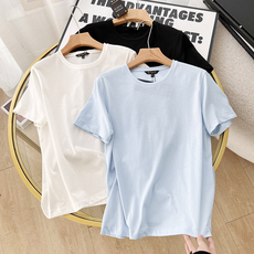 纯棉白色短袖t恤女宽松纯色圆领2022年新款夏季ins潮百搭显瘦简约