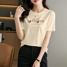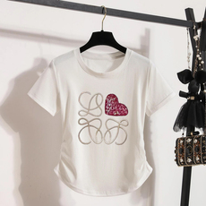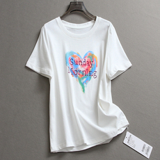 彩色爱心字母纯棉圆领正肩H型遮肉显瘦减龄百搭短袖休闲T恤女L367