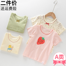 2件装女童宝宝纯棉薄款短袖t恤衫网眼透气打底衫儿童女孩半袖上衣
