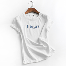 V155字母印花纯棉显瘦圆领翻边短袖衫上衣夏季新款2021百搭女T恤