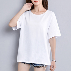 纯棉白色t恤女宽松短袖中长款大码遮肚子2021年夏季纯色圆领半袖