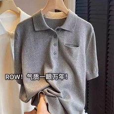 轻奢~老钱风POLO翻领柔软亲肤舒适针织衫上衣纯棉圆领短袖T恤女夏