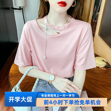 2025夏季新款优质纯棉短袖T恤女重工烫钻设计感修身气质显瘦上衣