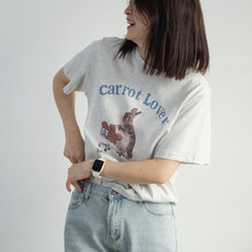 2025春夏新款百搭灰色复古卡通圆领纯棉休闲极简风短袖宽松T恤女