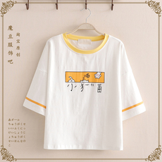 撞色趣味卡通印花纯棉圆领2025夏新款减龄百搭休闲女短袖T恤Z475