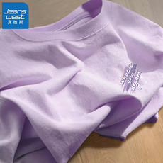 KWV真维斯紫色短袖t恤女2025新款夏季小个子宽松体恤纯棉大码女装