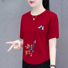 时尚梅花印花短袖T恤女夏季新款宽松休闲显瘦圆领大码体恤上衣