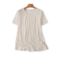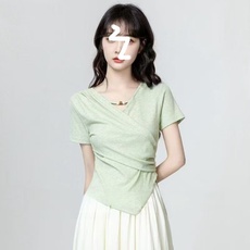 夏季新款韩版斜领修身显瘦褶皱短袖体恤上衣内搭女打底衫纯棉T恤