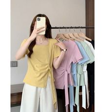 圆领系带短袖T恤衫 夏季新款显瘦女套头体恤衫 宽松休闲上衣11294
