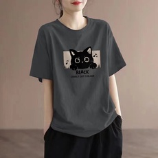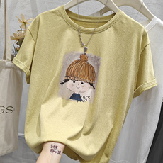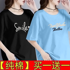 纯棉短袖t恤女夏季宽松洋气印花圆领体恤时尚百搭显瘦女士上衣服