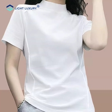 网纱短袖t恤女夏季2024新款时髦漂亮体恤小衫修身显瘦半高领上衣