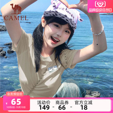 骆驼正肩圆领T恤女2025夏季棉T透气短袖休闲运动显瘦透气上衣体恤