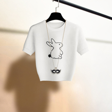 韩系减龄!2025新款白色卡通印花设计百搭休闲显瘦短袖体恤女