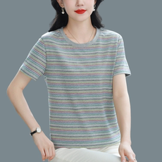 纯棉短袖t恤女装新款夏装大码条纹宽松上衣半袖体恤中年妈妈显瘦
