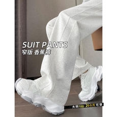 灰色休闲裤女秋季新款胖mm高腰宽松显瘦垂感阔腿长裤梨形身材裤子
