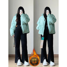 大码女装黑色西装裤女胖mm宽松长裤遮肉显瘦西裤百搭开叉裤子女裤